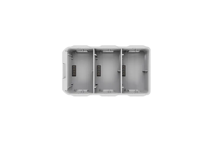 Supports power accumulation, transferring remaining power from multiple batteries to the one with the highest charge. Supports parallel charging of three batteries* when used with DJI 65W Portable Charger, fully charging 3 Intelligent Flight Batteries in about 87 minutes, and 3 Intelligent Flight Battery Plus in about 130 minutes*.