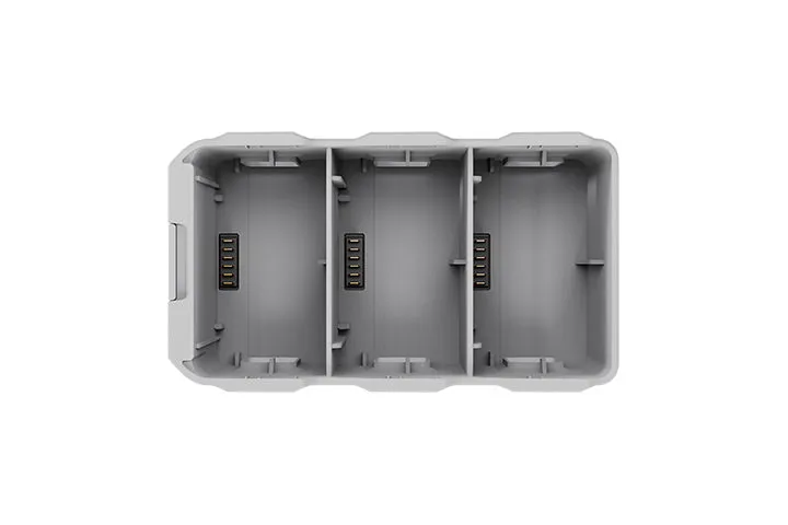 Supports power accumulation, transferring remaining power from multiple batteries to the one with the highest charge. Supports parallel charging of three batteries* when used with DJI 65W Portable Charger, fully charging 3 Intelligent Flight Batteries in about 87 minutes, and 3 Intelligent Flight Battery Plus in about 130 minutes*.