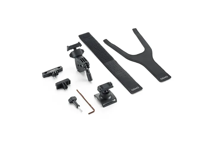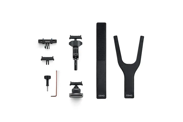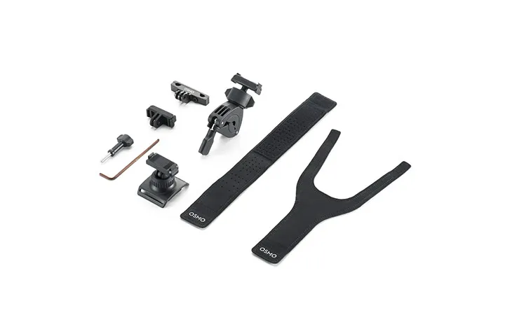 The kit includes the Dual-Direction Quick-Release Adapter Mount, Dual-Direction 360° Wrist Strap, Dual-Direction Mini Handlebar Mount, Bike Seat Rail Mount, Locking Screw, and Hex Key. Switching camera position is effortless with the Dual-Direction Quick-Release Adapter Mount. Mount the camera to the handlebar with the Dual-Direction Mini Handlebar Mount to capture views ahead. Mount the camera to the bottom of the bike seat with the Bike Seat Rail Mount to capture companions behind you along the way. Detach the camera during break and secure it to the Dual-Direction 360° Wrist Strap for easy vlogging.