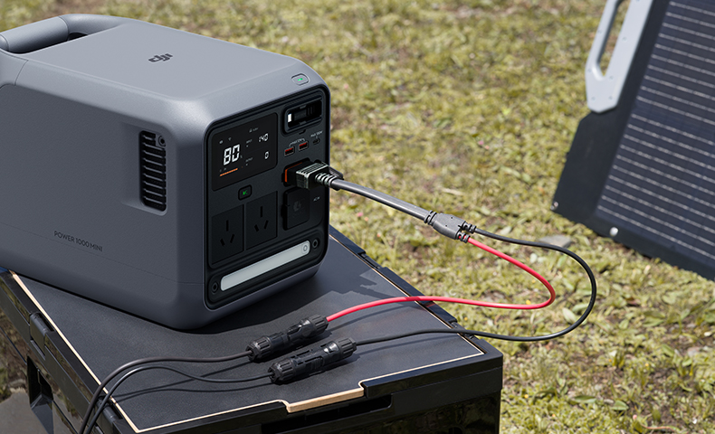 2. The built-in MPPT module allows you to use the DJI Power MC4 Solar Power Charging Cable to connect DJI Power 1000 Mini to solar panels for efficient DC recharging.