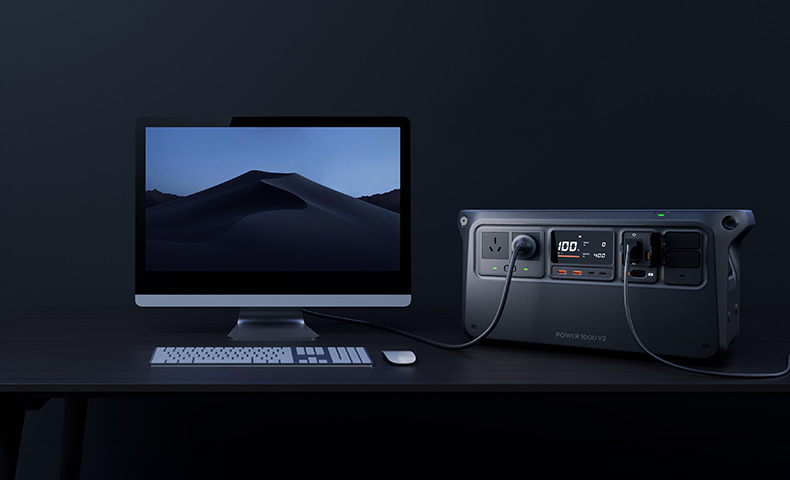 When an electrical device is connected to a powered-on DJI Power 1000 V2 via an AC output port and both are receiving grid power, the Power 1000 V2 defaults to UPS (Uninterruptible Power Supply) mode. In the event of a sudden power outage, DJI Power 1000 V2 can start powering the connected device(s) within 0.01 seconds[20], ensuring continuous operation and providing you with peace of mind.