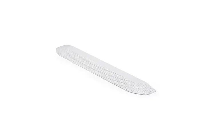 Features textured grooves that interlock with the robot's wheels for superior grip, helping it cross thresholds up to 4 cm high. Its high-strength, pressure-resistant chassis easily supports the robot's weight. The modular snap-on design allows for free combination in 10 cm increments to match the length of your threshold, and it installs quickly and securely with tailored adhesive backing.