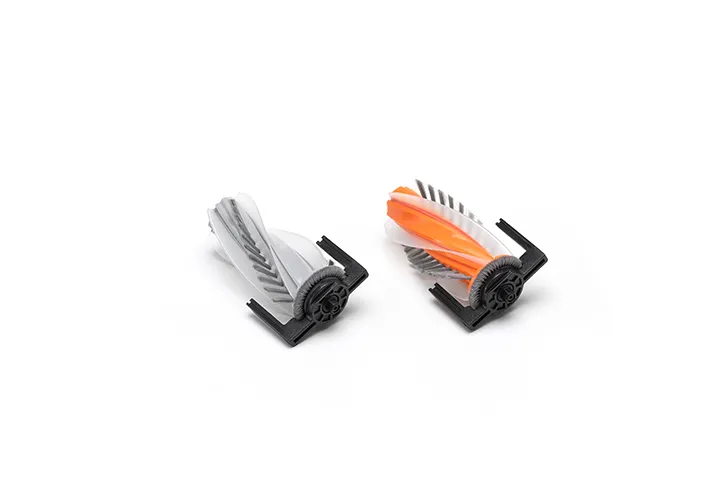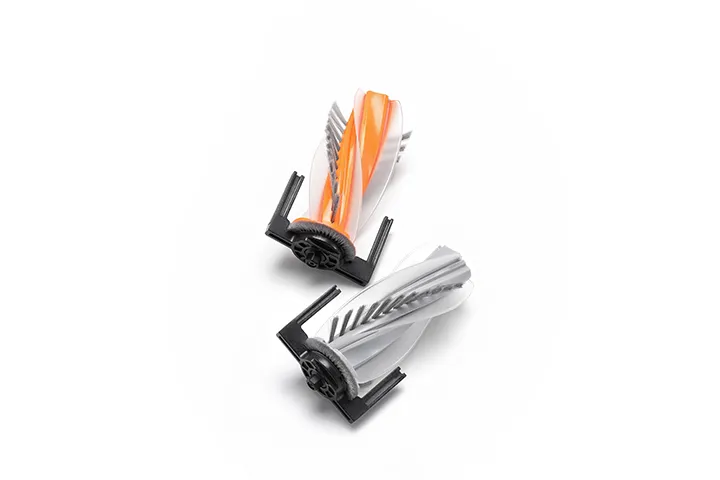 This hybrid brush combines angled bristles with wide rubber blades to enhance pickup of both hair and large debris. An anti-tangle design at the ends prevents hair buildup, guiding it toward the center for quick suction and achieving zero tangles [1].