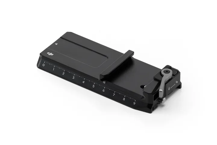 The lower quick-release plate features a scale on both sides and a serrated slot design on the bottom. This complements the fine-tuning knob on the gimbal's tilt axis, allowing cinematographers to perform precise, millimeter-level adjustments when changing cameras or lenses. It also facilitates a swift transition between tripods and stabilizers for the camera.