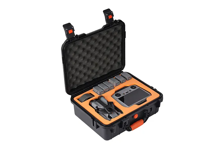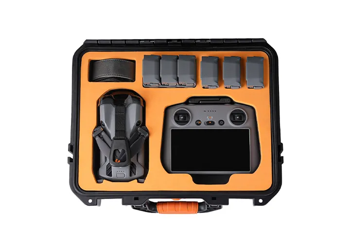 This rugged hard case is built to securely hold your Mini 5 Pro drone, RC controller (RC 2 or RC-N3), battery charging hub, up to 7 batteries (one in the drone and six extras), along with essential accessories like USB-C charger, cables, propellers, straps, and more. The custom-cut interior keeps everything neatly organized and cushioned, while the waterproof, impact-resistant shell safeguards your gear from water, dust, and bumps during travel or storage.
